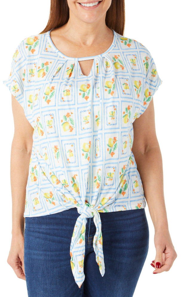 Women's Floral Print Tie Front Top Bealls