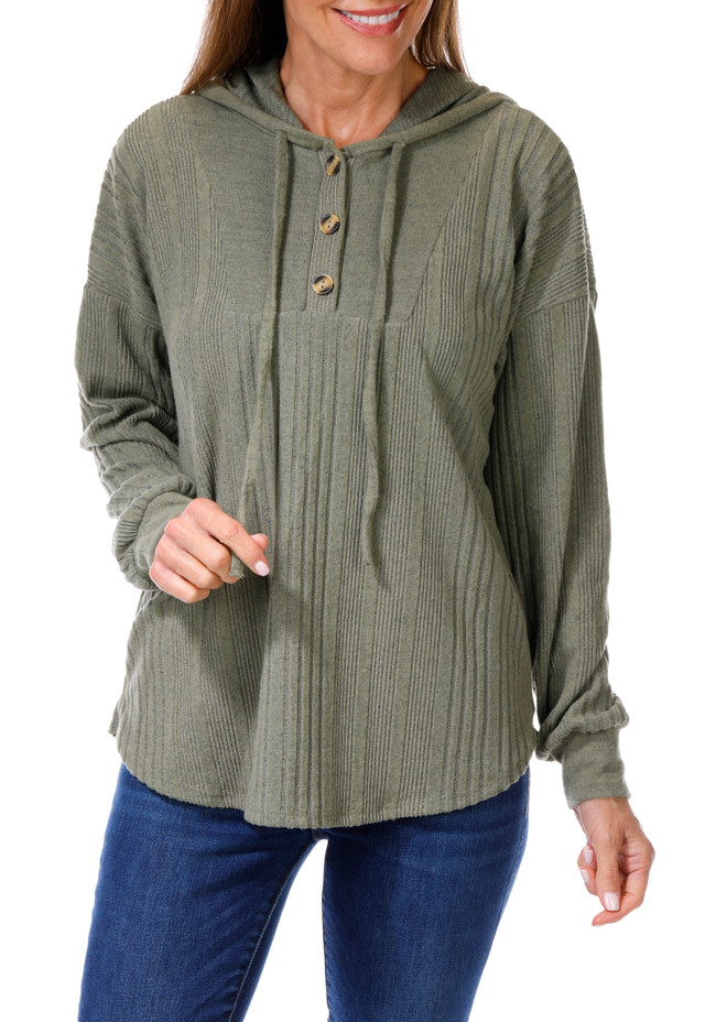 Women's Solid Hacci Hooded Top Bealls